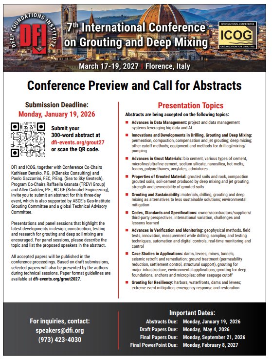 Przekazujemy informację nt. organizacji International Conference on Grouting and Deep Mixing w dniach 17-19 marca 2027 roku we Florencji.