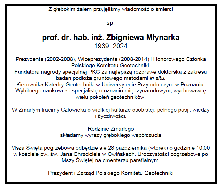 Z żalem zawiadamiamy o śmierci i pogrzebie prof. Zbigniewa Młynarka.